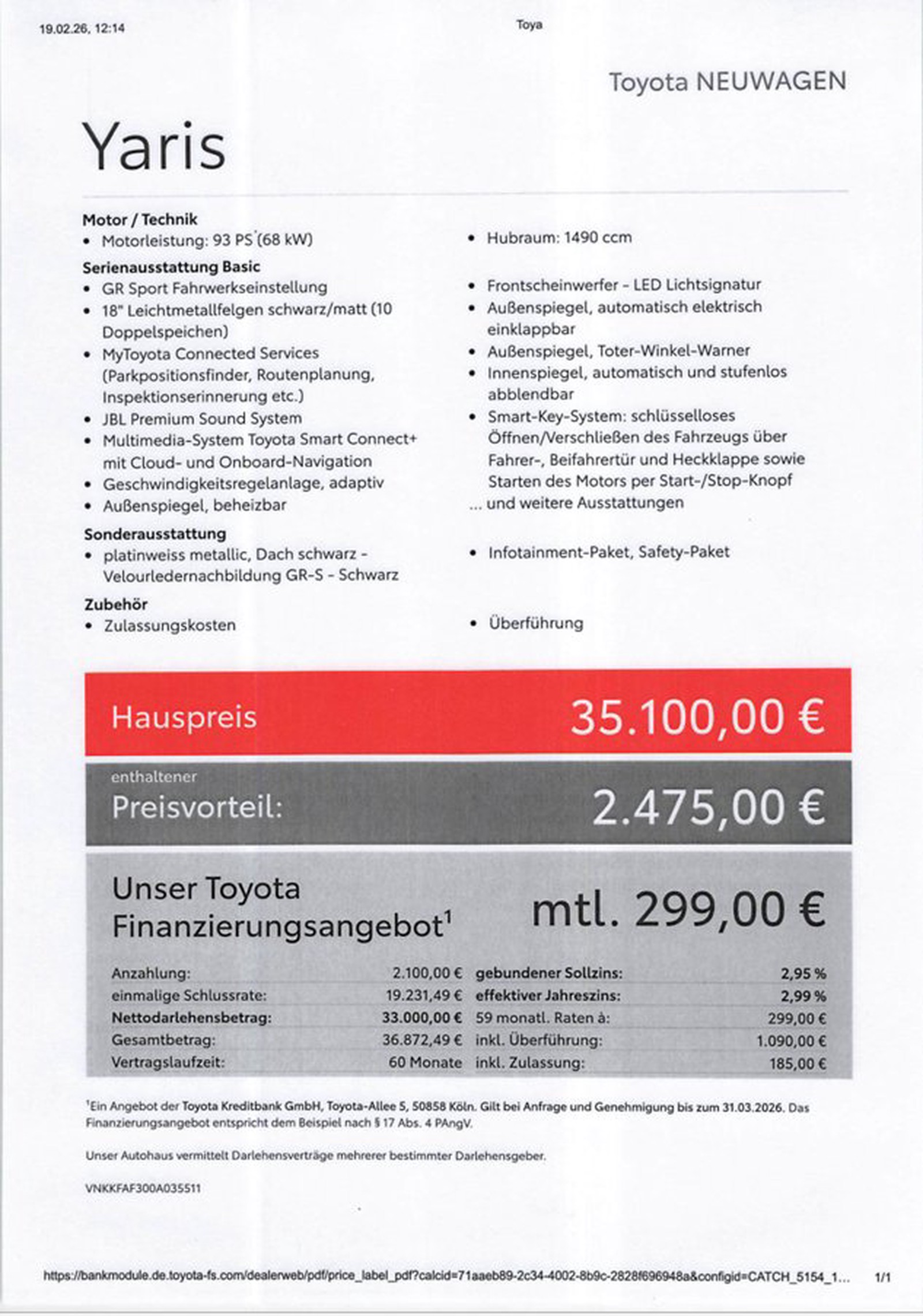 Toyota Yaris Hybrid GR Sport 1,99% +JBL+ Infotainment-Paket, Safety-Paket